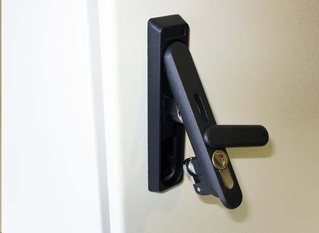 dveře - plné, otevíratelné o 110°, 3-bodový zámek, zaměnitelný směr otevírání, těsnění z pěnového polyuretanu