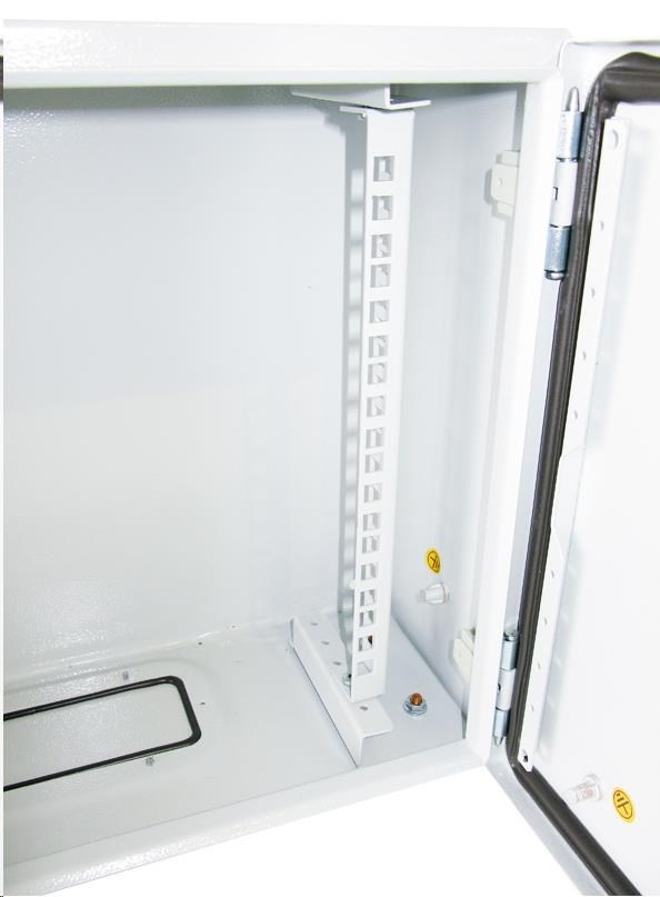 Venkovní nástěnný rozvaděč vyrobený z válcované oceli o tloušťce 1,5 mm.Třívrstvá povrchová úprava. Provedení: dveře - plné, otevíratelné o 110°, zaměnitelný směr otevírání, těsnění z pěnového polyuretanu zádní kryt - plný boční kryt - plný horní kryt - plný