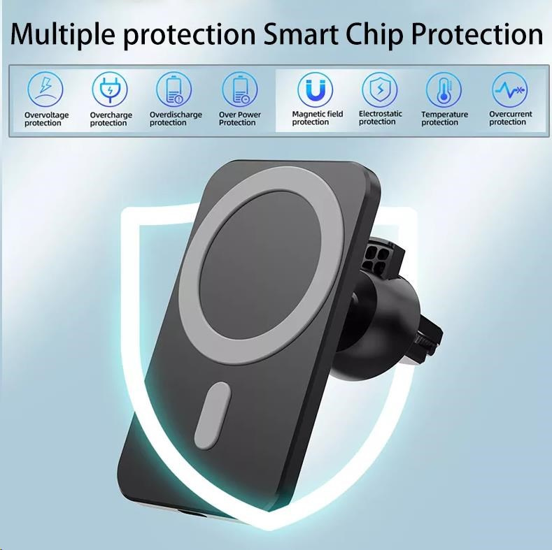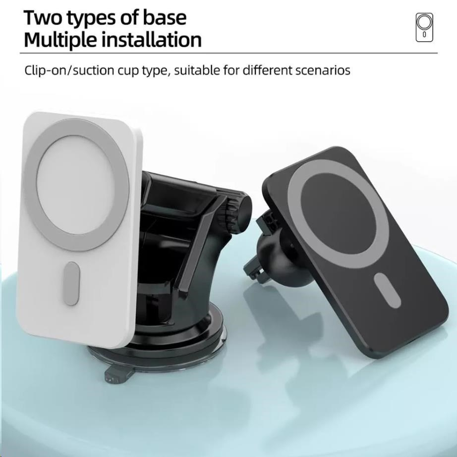 Kvalitní výkonná bezdrátová magnetická nabíječka do auta s podporou Apple MagSafe. Vybavená dvěma držáky, zvolit tak můžete buď variantu do ventilace, nebo otočný a výsuvný držák s přísavkou.