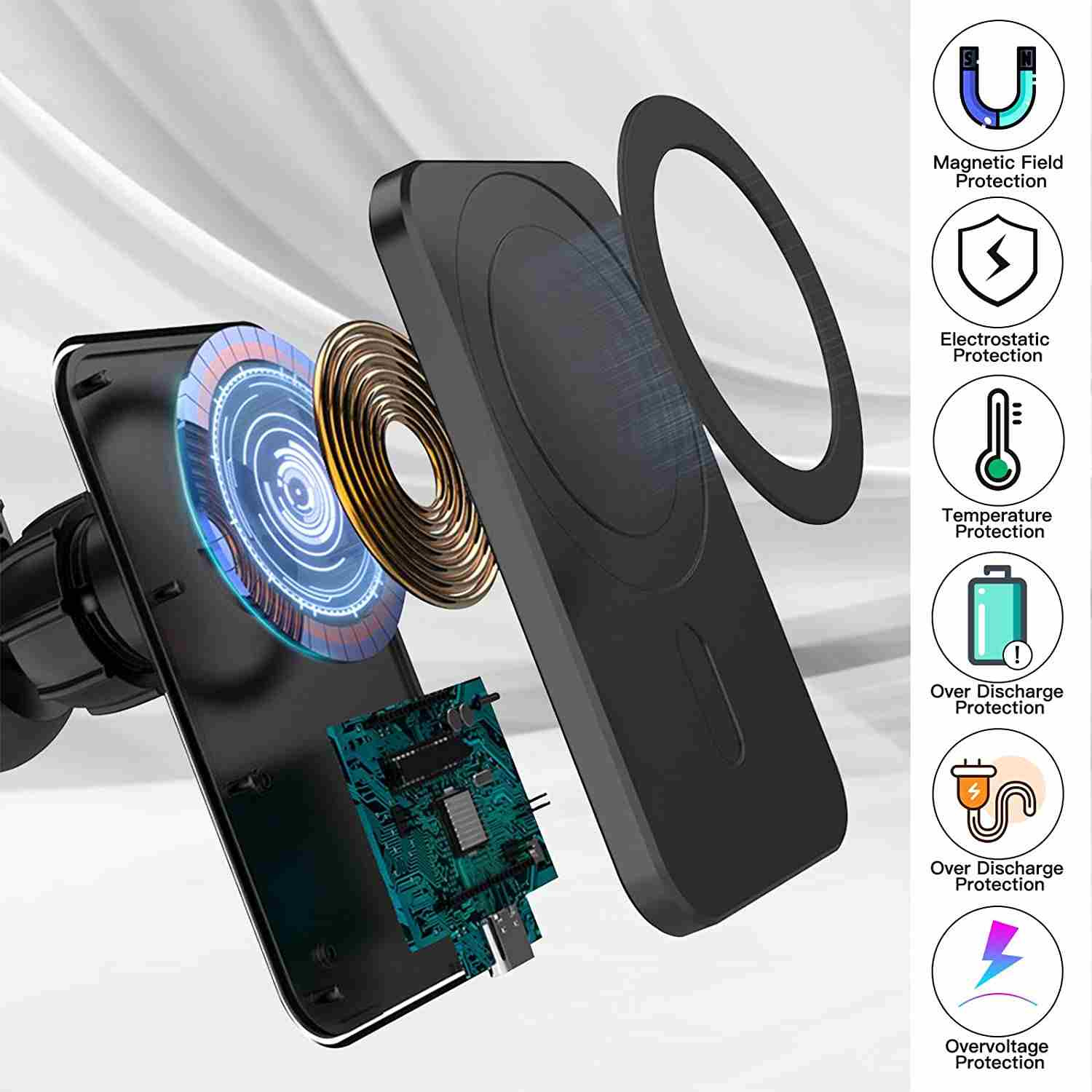 1stCOOL bezdrátová QI nabíječka 15W, magnetická, do auta, MagSafe kompatibilní, černá