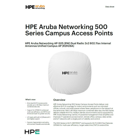 Odkaz na web výrobce: https://www.arubanetworks.com/assets/ds/DS_AP500Series.pdf