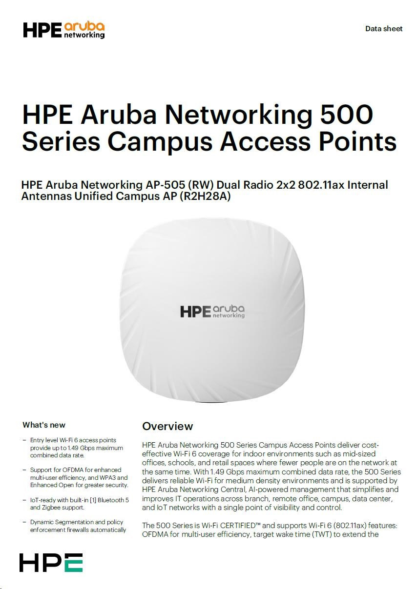 Odkaz na web výrobce: https://www.arubanetworks.com/assets/ds/DS_AP500Series.pdf