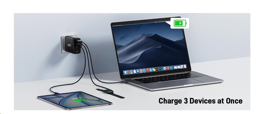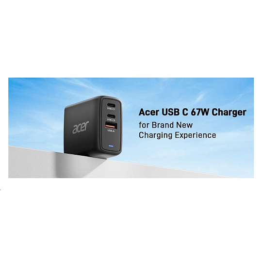 ACER Adapter 67W PD GaN charger,USB-C,USB-A,EU plug,Black