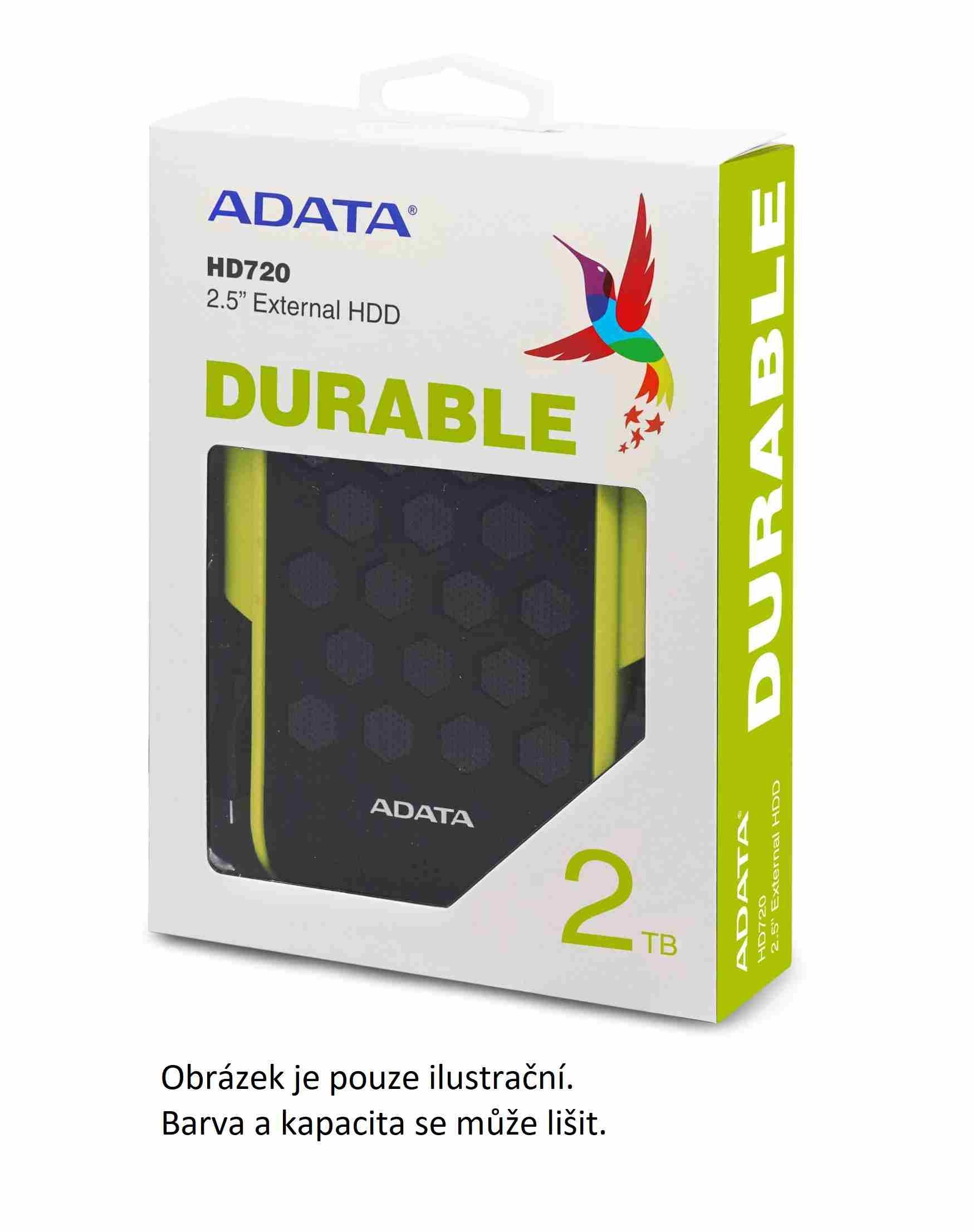 ADATA Externí HDD 2TB 2,5" USB 3.2, DashDrive™ Durable HD720, G-sensor, modrý, (gumový, vodě/nárazu odolný)