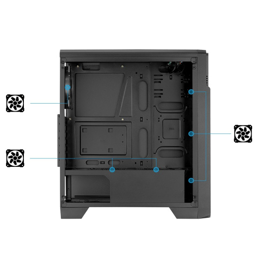 součástí skříně jsou 3x 120mm namontované přední ventilátory
