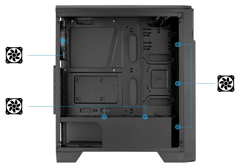 součástí skříně jsou 3x 120mm namontované přední ventilátory