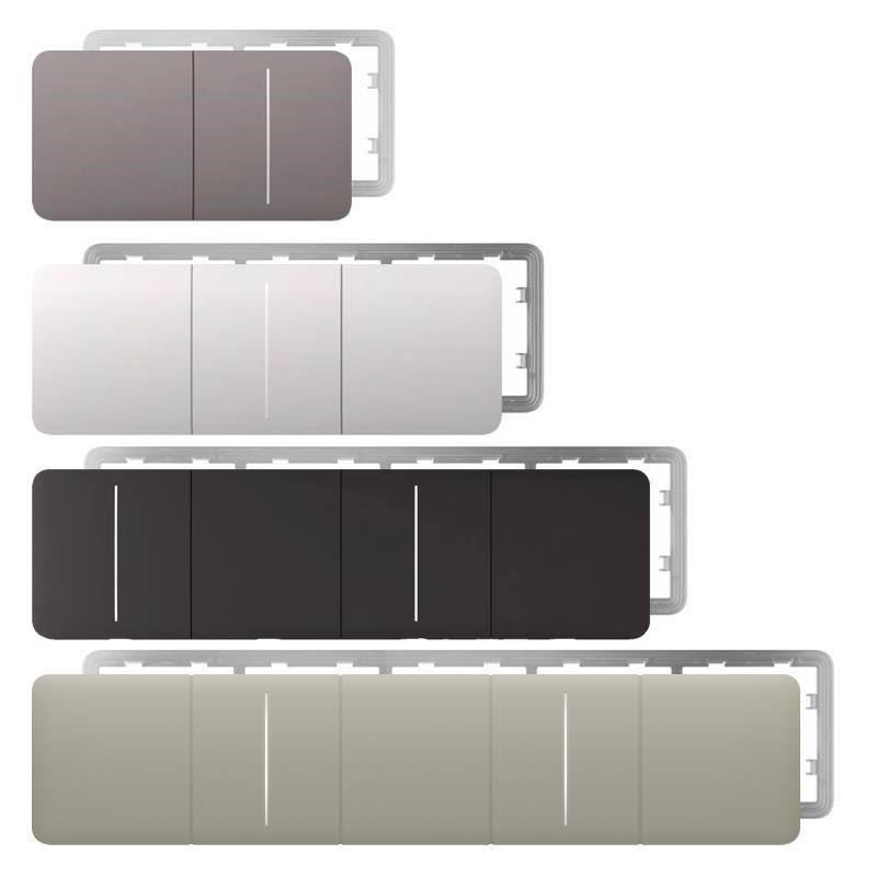 - Dostupné v různých barvách, které lze kombinovat s barvami dotykových panelů LightSwitch a zásuvek CenterCover a SideCover.