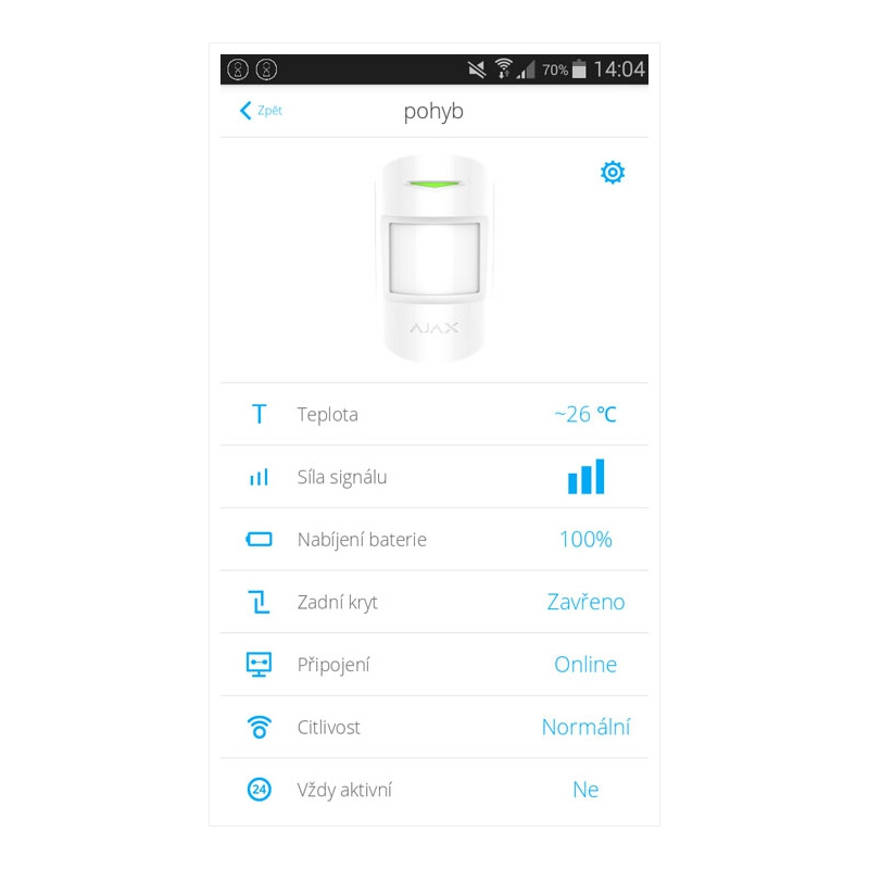 Detekční zóny a kvalitu připojení je možné vzdáleně otestovat prostřednictvím mobilní aplikace.