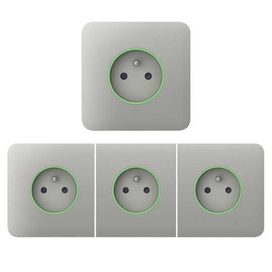 Zásuvky lze používat samostatně nebo je kombinovat s chytrými vypínači LightSwitch a instalovat do rámečku. Přístroje mají stejný design rámečku a barevné odstíny.