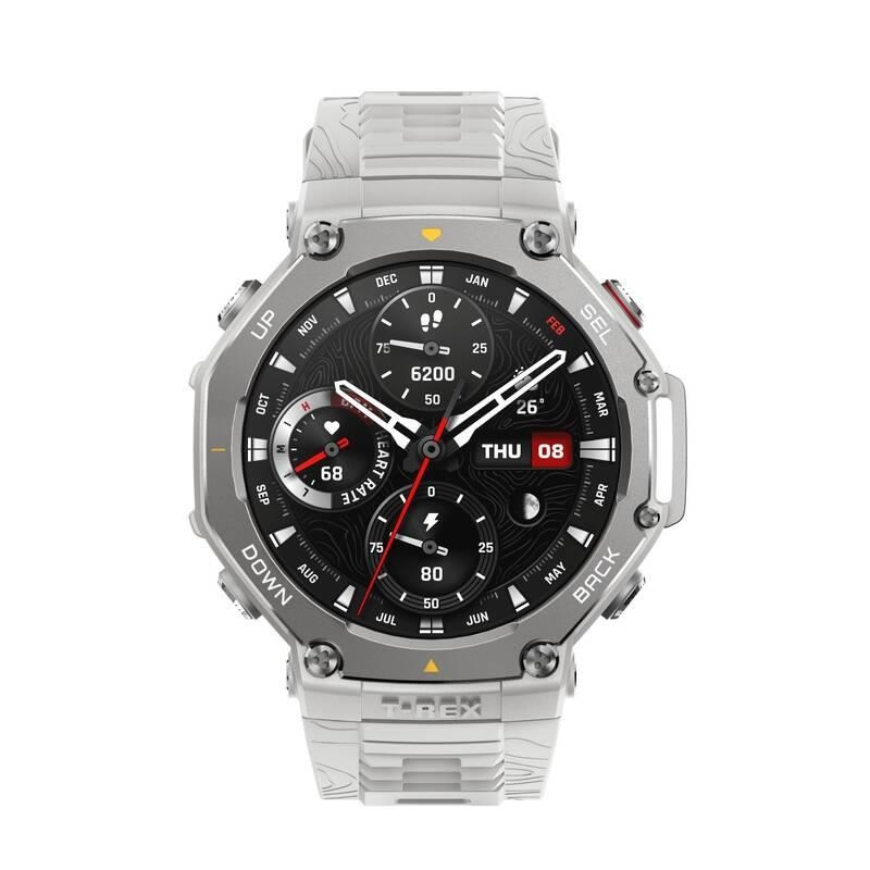 Díky rámečku vojenské kvality z nerezové oceli jsou hodinky Amazfit T-Rex 3 připraveny na jakoukoliv výzvu, pro kterou se rozhodnete, a jsou odolné vůči extrémním teplotám, vlhkosti, nárazům a dalším vlivům.