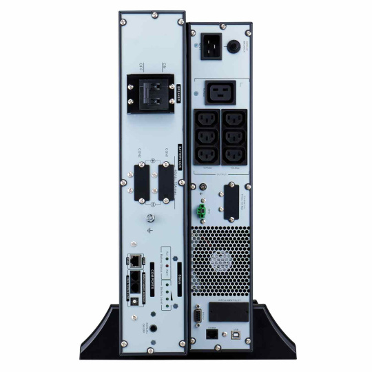 | Dodávka obsahuje | Základní kabel pro komunikaci záložního zdroje přes rozhraní RS-232, Kabel USB, Kabel RJ45, Kabel RJ11, Napájecí kabel C13-C14, Skříňové instalační konzole, Skříňové podpěrné lišty, Stabilizační nohy, Uživatelská příručka, Bezpečnostní příručka, Battery cable |