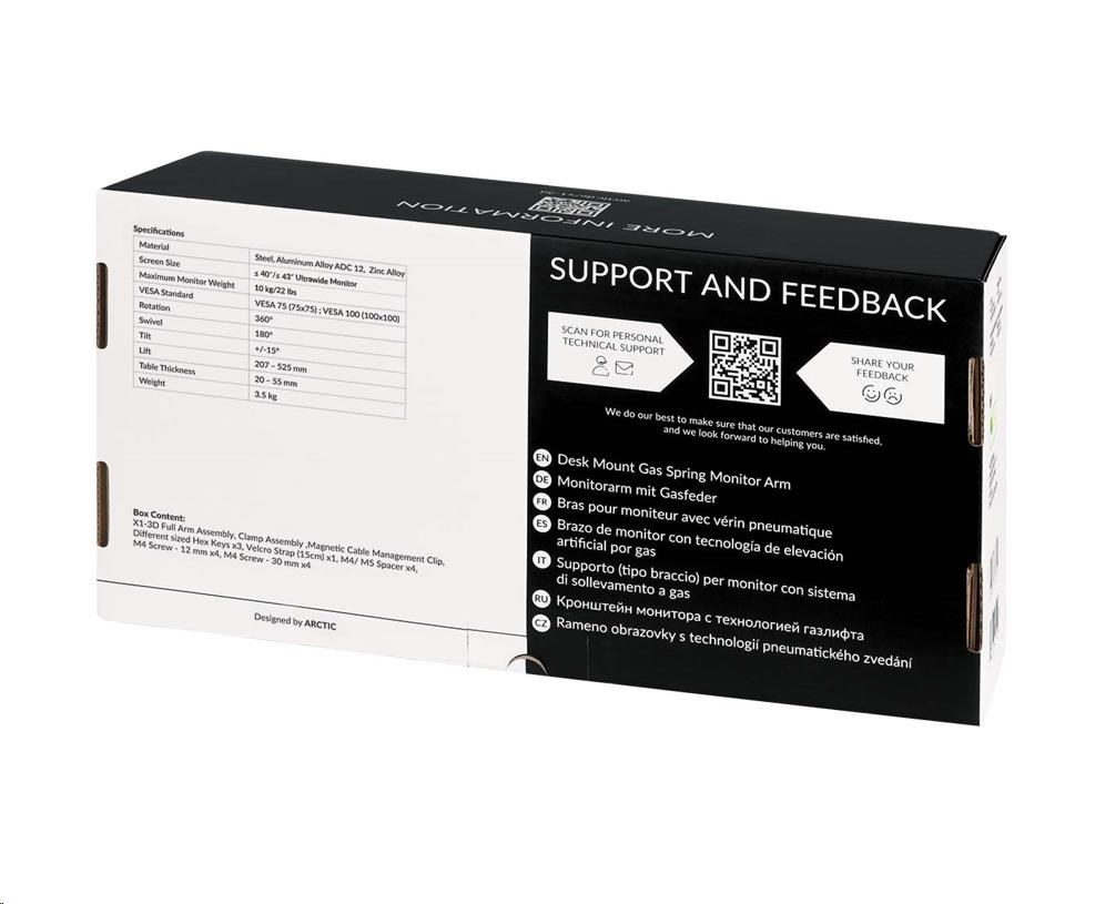 ARCTIC držák na monitor X1-3D, ocel, matná černá