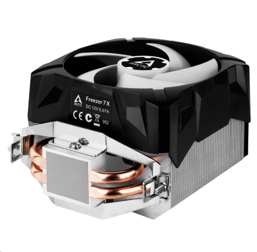 ARCTIC Freezer 7 X je kompaktní chladič CPU s jedním 100 mm ventilátorem. Je multikompatibilní s běžnými paticemi Intel® a AMD®. Těží z vylepšeného designu chladiče a přepracovaného rozložení heatpipe. Ve spojení s ventilátorem, který je optimalizován pro vysoký statický tlak, se ARCTIC podařilo výrazně zlepšit chladicí výkon Freezer 7 X.