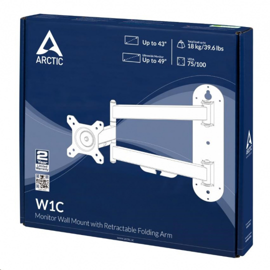The ARCTIC W1C monitor wall mount supports the latest ultrawide monitors (up to 49 inches) with ease. Classic 16:9 monitors are also compatible (up to 43 inches). The W1C supports a total load 18 kg/39.6 lbs.