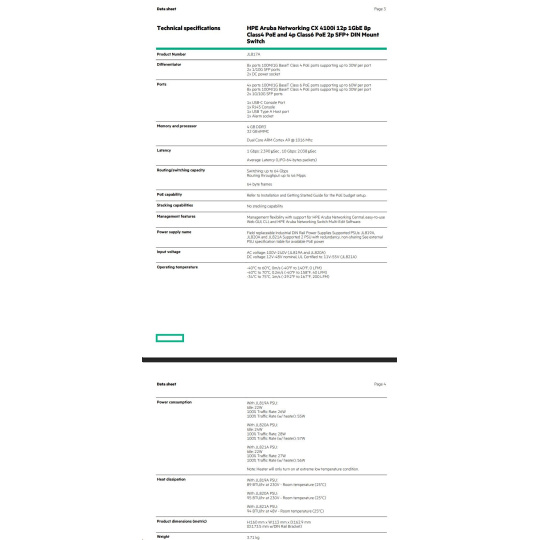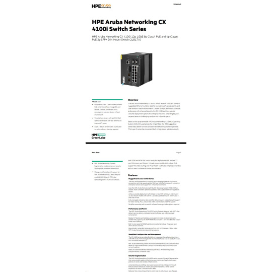 Aruba 4100i 12-port 1GbE (8-port Class 4 POE and 4-port Class 6 POE) 2-port SFP+ DIN Mount Switch (JL817A)