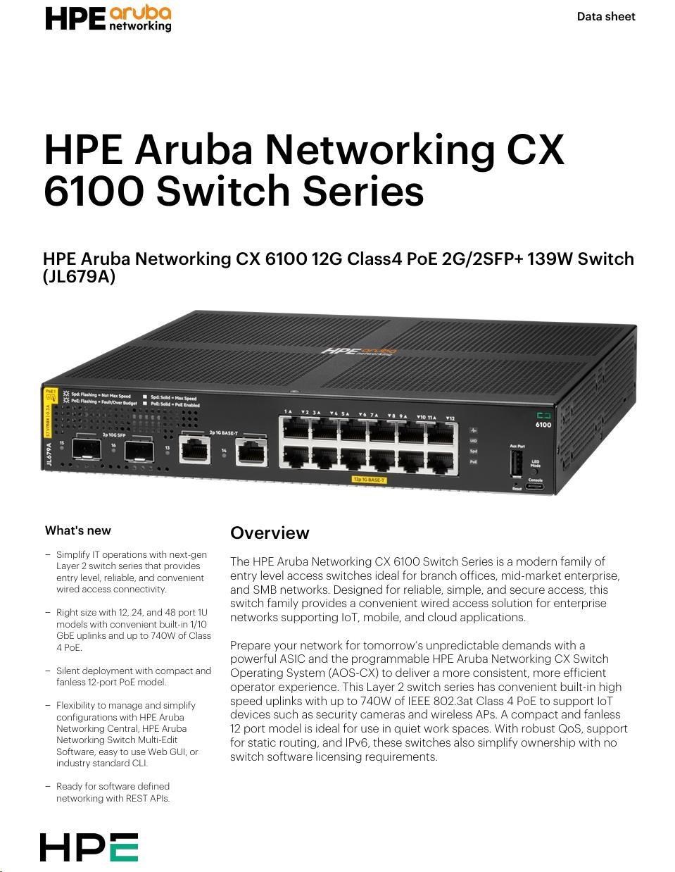 Aruba 6100 12G Class4 PoE 2G/2SFP+ 139W Switch (JL679A) | |