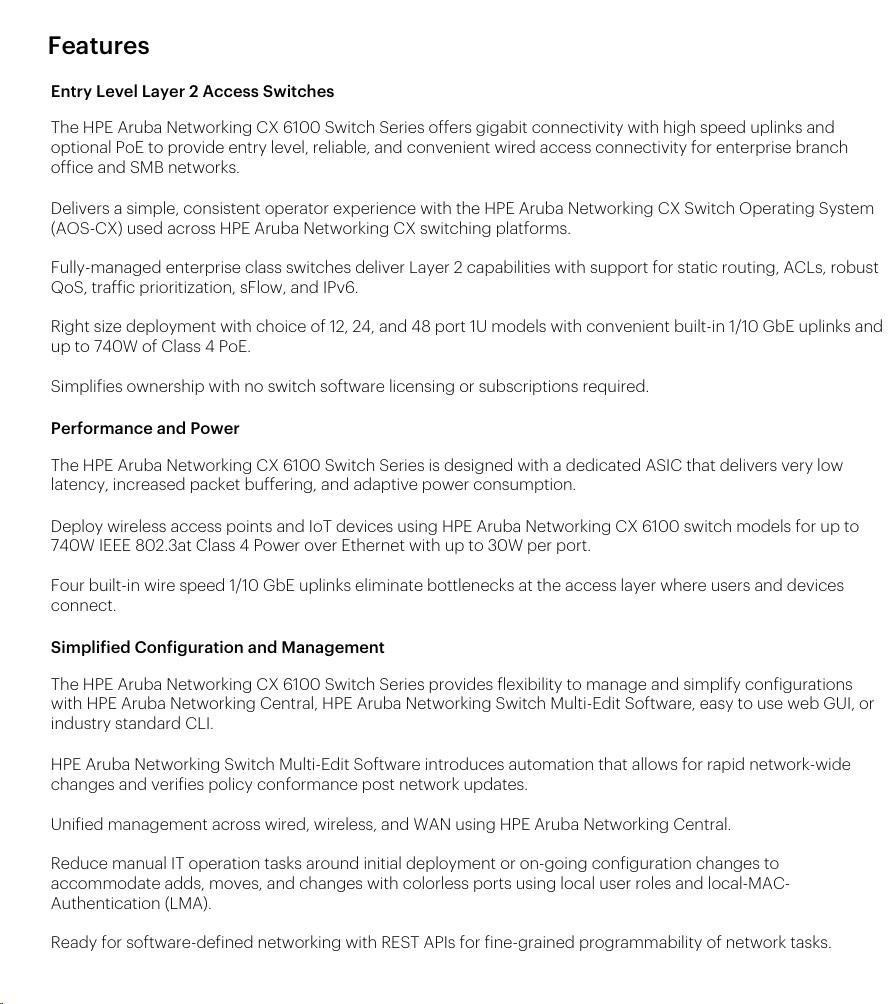 | Aruba 6100 12G Class4 PoE 2G/2SFP+ 139W Switch (JL679A) | |