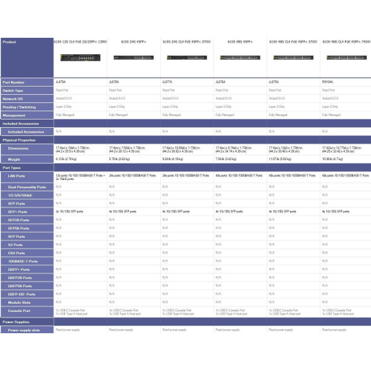 | Aruba 6100 48G Class4 PoE 4SFP+ 370W Switch (JL675A)) | |