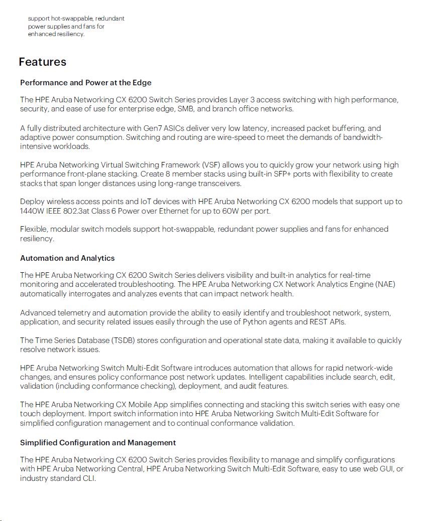 | HPE Aruba Networking CX 6200F 24G 4SFP+ Switch (JL724A) | ||