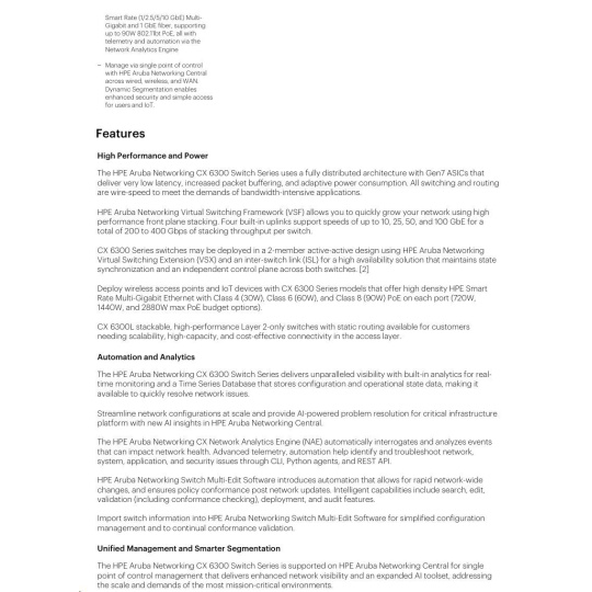 Řada přepínačů Aruba CX 6300 je moderní, flexibilní a spolehlivé zařízení.