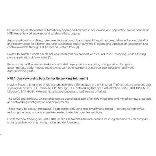 | Description | 48x ports 10/100/1000 BaseT PoE+ ports supporting up to 30W per port Notes: 150G capability is for use with 50G DACs for both interconnect and VSF stacking. 50G SR transceivers have been added with a minimum software of 10.09.1010. VSF stacking not supported on 1G ports. | |