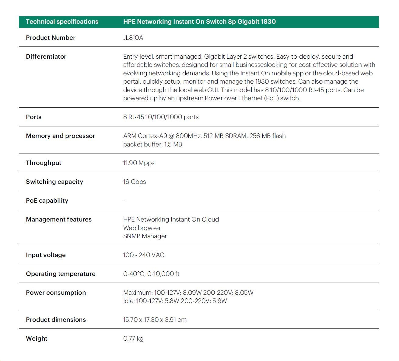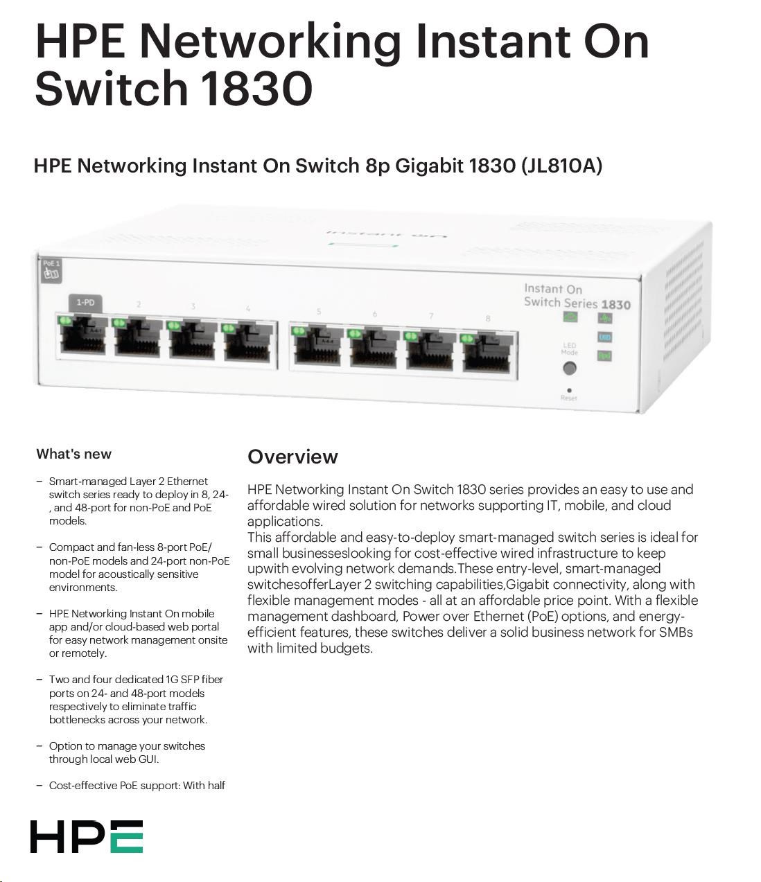 HPE Networking Instant On Switch 8p Gigabit JL810A 1830 (fanless)