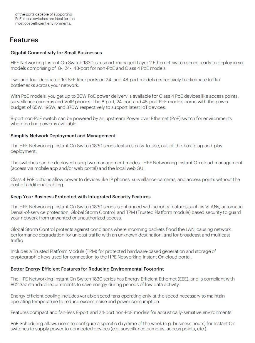 Aruba Instant On 1830 48G 24p Class4 PoE 4SFP 370W Switch