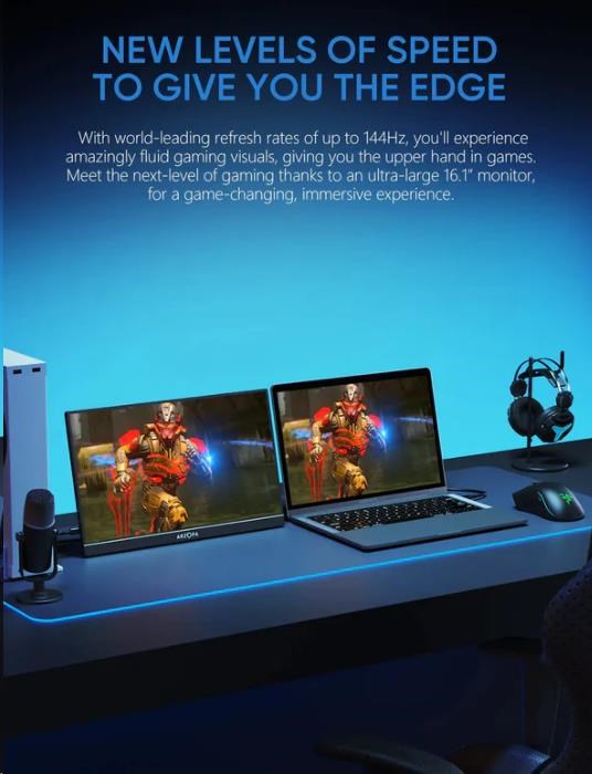 Arzopa Z1RC je přenosný monitor, který kombinuje vynikající kvalitu obrazu s kompaktním designem. Jeho 16" obrazovka nabízí rozlišení 2560 x 1600 p s obnovovací frekvencí 60 Hz, díky čemuž si můžete vychutnat dynamický obraz s bohatými detaily. Je kompatibilní se širokou škálou zařízení a díky možnosti zobrazovat obraz na výšku i na šířku jej přizpůsobíte svým preferencím. Snadno se vám vejde do tašky nebo batohu a poskytne vám možnost pracovat nebo se bavit kdekoli.