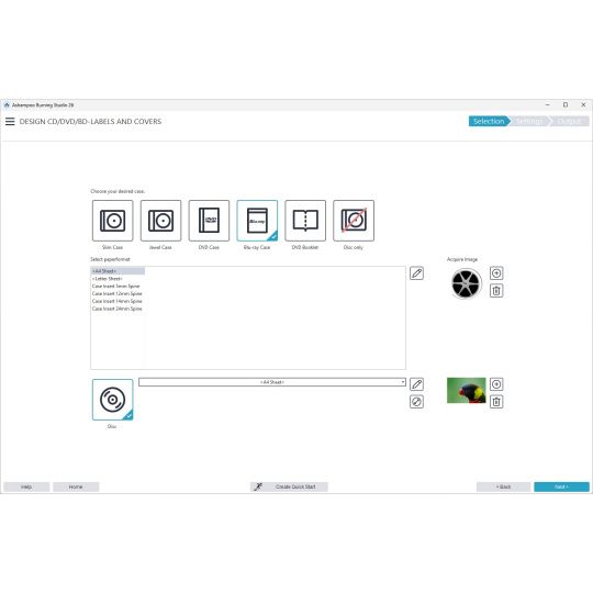 Vytváření obalů a vložek bylo vždy silnou stránkou aplikace Burning Studio. Intuitivní úvodní nabídka vás nasměruje správným směrem a umožní vám ihned vybrat oblíbené obrázky. Poté již krok za krokem dojdete k hotovému obalu. Abyste ušetřili čas a námahu, funkce importu vám pomůže analyzovat váš disk a v případě potřeby automaticky stáhne potřebná metadata z internetu a vytvoří pro vás vhodný seznam stop. Ať už potřebujete obal rychle spíchnout, nebo navrhnout vlastní od základu, nebudete zklamáni!