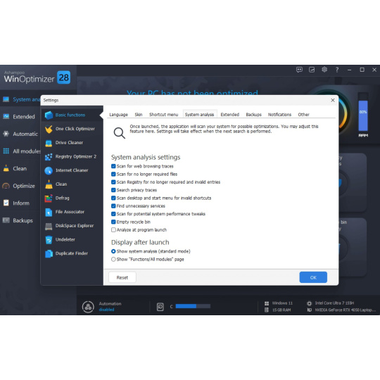 Automatická optimalizace systému Windows je již dlouhou dobu nedílnou součástí programu WinOptimizer. Je na čase postarat se o zbytek! Tuning Assistant vám položí několik jednoduchých otázek s dalekosáhlými důsledky. Každá odpověď vás přiblíží k rychlejšímu, diskrétnějšímu a bezpečnějšímu počítači se systémem Windows - a to vše při neformální konverzaci s naším softwarem. Vypněte nepotřebné služby na pozadí, optimalizujte nastavení zabezpečení a přizpůsobte systém Windows pro lepší výkon a soukromí, a to bez rizika!