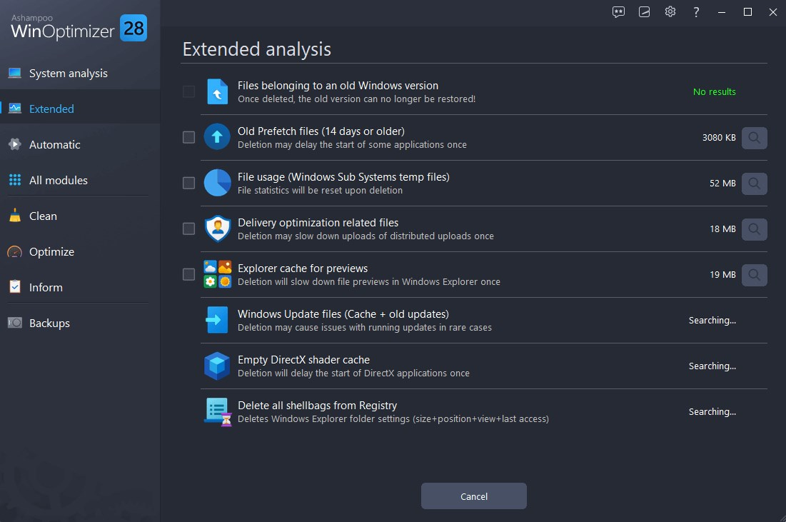 S novým a rozšířeným hloubkovým čištěním vstupuje hon na nepotřebné soubory do nové fáze - a problémy se soukromím a zobrazením lze nyní také snadno vyřešit! Zbavte se starých verzí systému Windows, záloh aktualizací systému Windows a statistik používání systému Windows. Problémy se zobrazením ve hrách vyřešíte vyprázdněním mezipaměti shaderů DirectX a pomalý Průzkumník Windows zrychlíte vymazáním mezipaměti náhledu. Získáte přitom také spoustu místa na pevném disku.