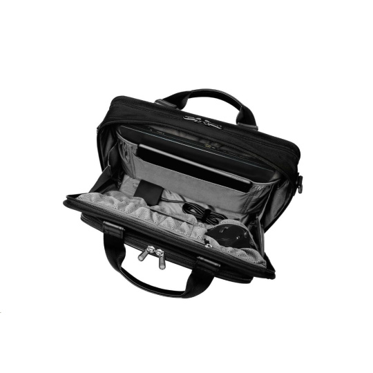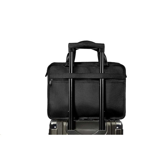 Tašku ASUS Vantage Briefcase je možné nosit za rukojeť, nebo si ji přehodit za rameno pomocí popruhu. Je vybavená také popruhem pro připevnění k zavazadlům.