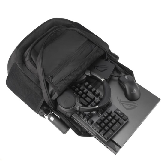 35litrový herní batoh ROG Ranger BP2800 je navržen s ohledem na maximální úložný prostor a má velkou vnitřní polstrovanou kapsu, do které se vejde až 18palcový notebook. Batoh Ranger BP2800 je ideální na krátké výlety a útěky a obsahuje řadu vnitřních a vnějších přihrádek, které na cestách bezpečně uchovávají osobní věci a herní potřeby, jako je klávesnice, náhlavní souprava a myš.