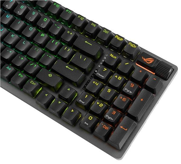 - Vylepšené možnosti psaní: Předem namazané stabilizátory klávesnice produkují menší tření pro hladší stisk kláves a stabilitu pro delší klávesy; odolné krytky kláves ROG PBT doubleshot nebo krytky kláves ABS s UV vrstvou nabízejí prvotřídní pocit a odolnost proti lesku