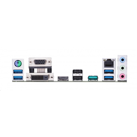 | Back I/O Ports | 1 x PS/2 keyboard/mouse combo port(s) 1 x DVI-D 1 x D-Sub 1 x HDMI 1 x LAN (RJ45) port(s) 1 x USB 3.2 Gen 2 (teal blue) (1 x Type-A) 4 x USB 3.2 Gen 1 (blue) Type-A 2 x USB 2.0 3 x Audio jack(s) |