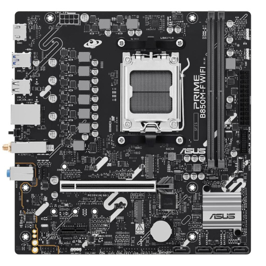 Based on the AMD B850 chipset, the ASUS PRIME B850M-F WIFI motherboard is designed to accommodate AMD Ryzen 7000/8000/9000 processors on socket AM5. It is ideal for assembling a gaming or multimedia configuration. More affordable than the X870 chipset, it supports DDR5, PCI-Express 5.0 graphics cards and PCIe 5.0 M.2 SSDs.