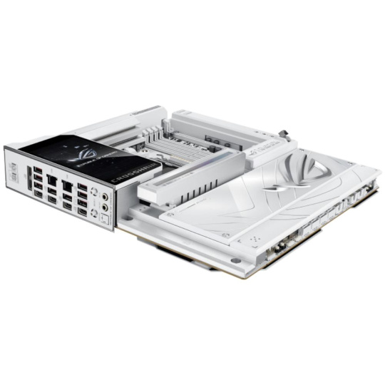 The ROG X870E Glacial is a flagship motherboard engineered for uncompromising performance and sophisticated AI. It boasts a robust 24+2+2 power stage design, Dynamic OC Switcher, and Core Flex for next-generation overclocking control. Meanwhile, advanced memory tuning is unlocked through server-grade DRAM enhancement and NitroPath DRAM technology, and storage scales with support for up to seven M.2 drives. Top-tier connectivity includes two 10G Ethernet ports, two USB4® ports, and two USB 20Gbps Type-C® front-panel connectors. This motherboard also features a 3D VC M.2 heatsink and a 5-inch LCD display, along with AI Cache Boost and AI Advisor for smarter, more intuitive system tuning.