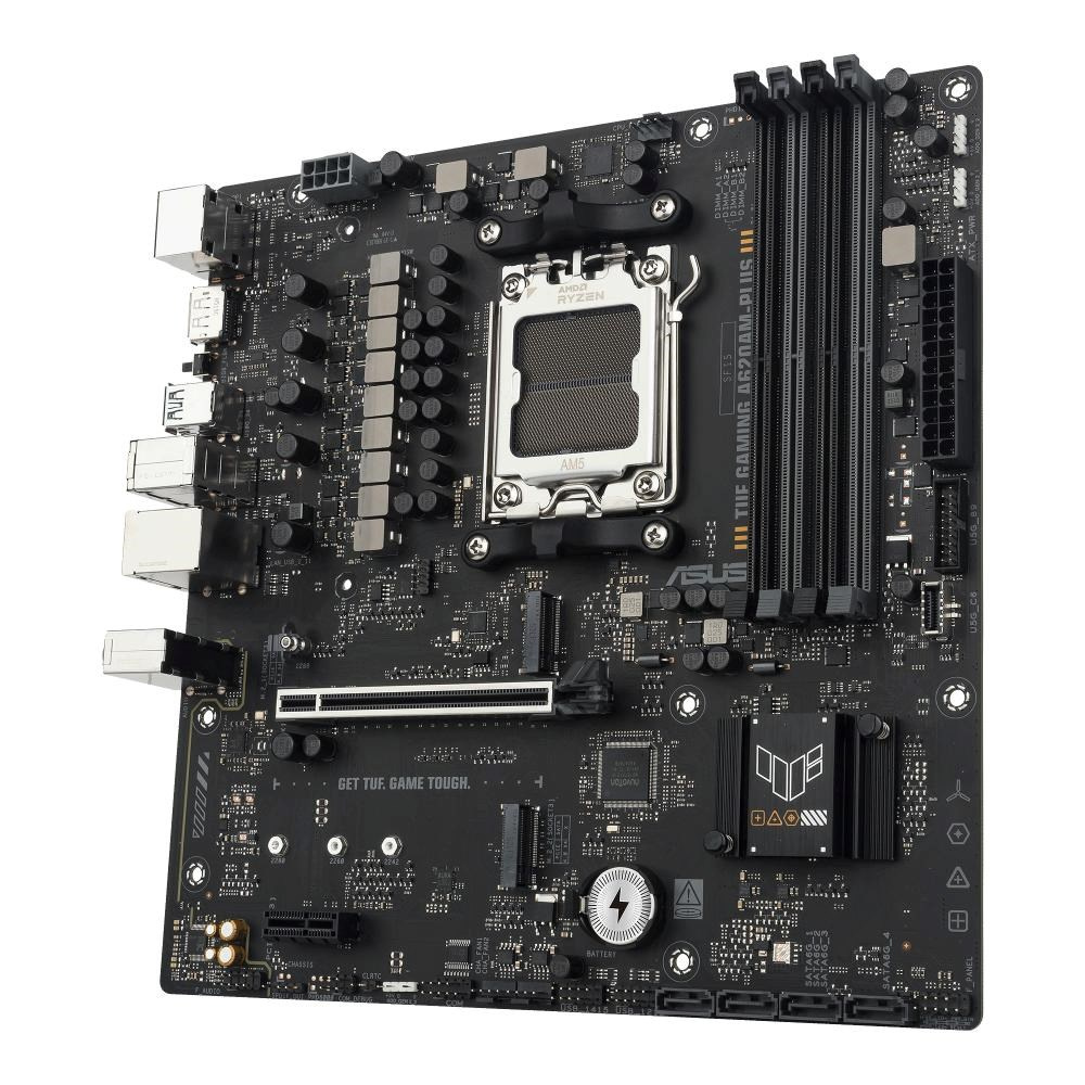 ASUS TUF GAMING A620AM-PLUS takes all the essential elements of the latest AMD Ryzen™ processors and combines them with game-ready features and proven durability. Engineered with military-grade components, an upgraded power solution and a comprehensive cooling system, this motherboard goes beyond expectations with rock-solid and stable performance for marathon gaming. TUF GAMING motherboards also undergo rigorous endurance testing to ensure that they can handle conditions where others may fail. This platform delivers the power and connectivity that advanced AI PC applications demand.
