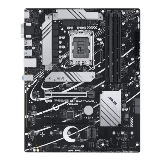 ASUS Prime B760-PLUS, an Intel® B760 LGA 1700 ATX motherboard with PCIe 5.0, three PCIe 4.0 M.2 slots, DDR5, Realtek 2.5Gb Ethernet, DisplayPort, VGA, HDMI™, SATA 6 Gbps, USB 3.2 Gen 2x2 Type-C®, front USB 3.2 Gen 1 Type-C®, Thunderbolt™ (USB4®) support, Aura Sync