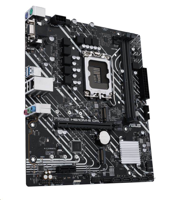 Formát základní desky:micro ATX; Chipset:Intel H610; Socket (patice):Socket 1700; Pro procesory:Intel; Technologie paměti RAM:DDR4; Počet paměťových slotů:2; M.2 slot:2; SATA 3:4; Podpora RAID:Bez RAID podpory; PCI Express x16:1; PCI Express x8:0; PCI Express x1:1; PCI:0; LAN:1Gbit/s; Bezdrátové připojení:bez; DisplayPort:1; HDMI:1; VGA:1; DVI:0.... více