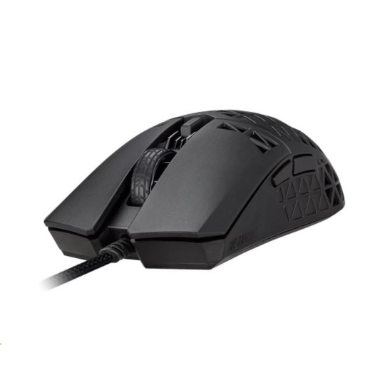 A lightweight wired gaming mouse with 16,000 dpi sensor, six programmable buttons, ultralight Air Shell, IPX6 water resistance , ASUS Antibacterial Guard, TUF Gaming Paracord and pure PTFE feet