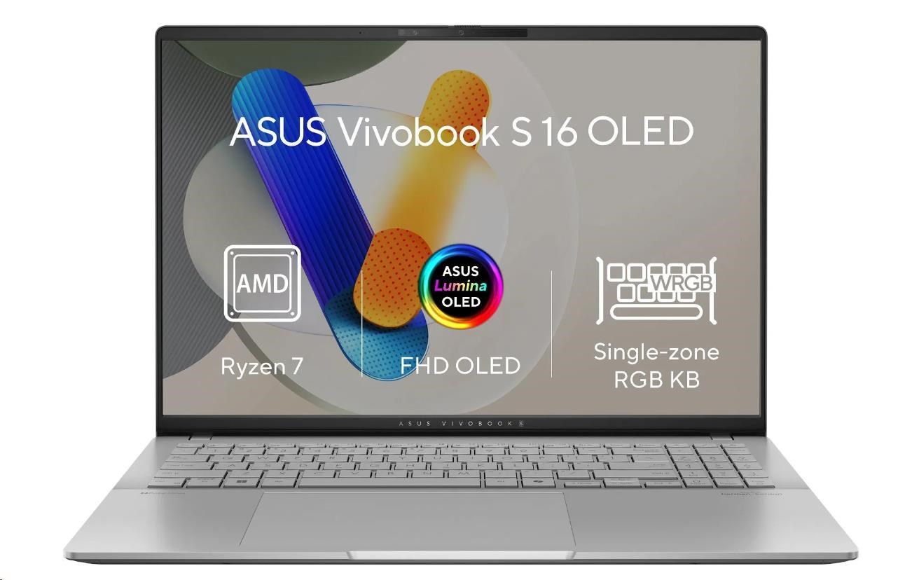 ASUS NTB Vivobook S16 OLED (M5606KA-OLED094X), AI 7 350, 16" 3K, 24GB, 1TB SSD, AMD Radeon, W11 Pro, Cool Silver