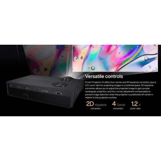 ASUS ProArt A1 LED professional projector- World’s first Calman Verified projector,? E < 2, 98% sRGB and Rec. 709, FHD (1920 x 1080), 3000 lumens, Four corner and 2D keystone correction, 1.2X zoom ratio, wireless mirroring