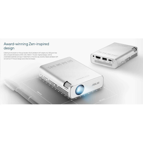 ASUS PROJEKTOR LED E1R ZenBeam, 200lum. LED 854x480 automatic portrait projection mode, battery 4h, USB-A HDMI