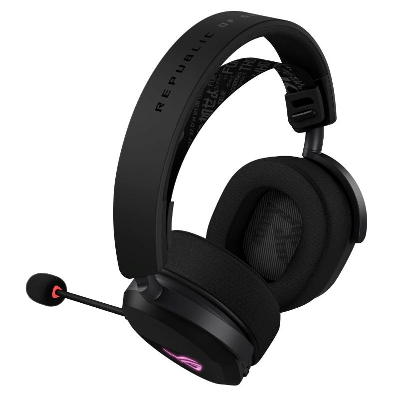 Herní sluchátka se třemi režimy RGB s bezdrátovou technologií ROG SpeedNova, 50mm ROG titanem pokovené membránové měniče, vylepšený bezdrátový zvukový podpis, 10mm super širokopásmový raménkový mikrofon, lehký design 309 g a navíc osvětlení ASUS Aura Sync RGB