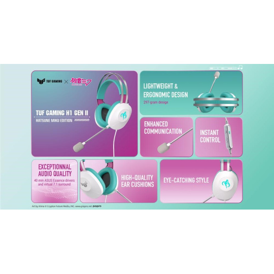 ASUS sluchátka TUF Gaming H1 GEN II Hatsune Miku Edition, Drátový herní Headset
