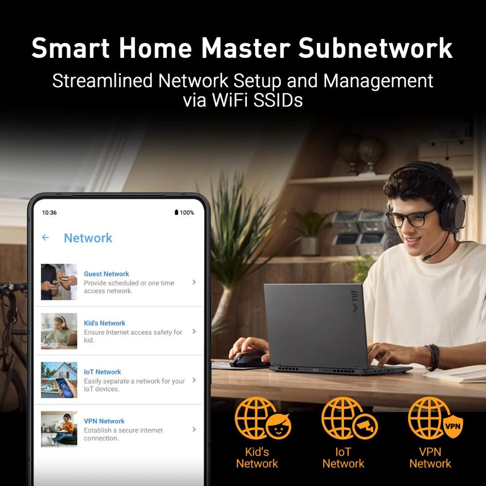 - Komplexní bezpečnostní systém – Je vybaven nejnovějšími bezpečnostními funkcemi ASUS, které zajišťují robustní ochranu před síťovými hrozbami.