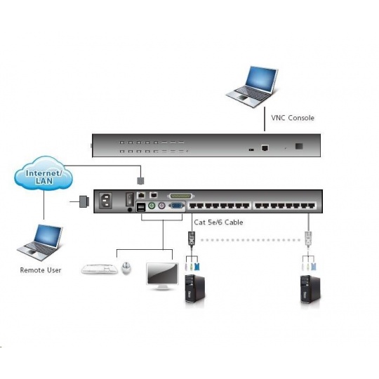 možno kontrolovat až 16 PC z jedné konzole přes síť LAN/WAN nebo Internet