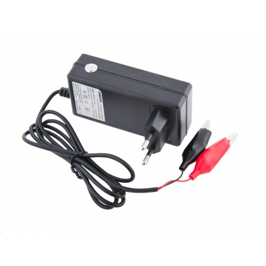 Mikroprocesorem řízená třístupňová nabíječka 12V / 0,8A pro SLA akumulátory AGM/GEL s kapacitou 3-10Ah. Tato nabíječka slouží k nabíjení bezúdržbových, hermeticky uzavřených akumulátorů AGM/GEL a je určena k použití v suchých a větraných místnostech. Samotný proces nabíjení je řízen elektronikou, nehrozí proto přebití akumulátoru. Nabíječku je možné použít i jako udržovací, tzn. že může být na akumulátor připojena i po rozsvícení zelené LED. Upozornění: Doporučujeme používat nabíječku pouze pro dobíjení akumulátorů s kapacitou odpovídající technickým specifikacím výrobku. Při nabíjení akumulátorů s vyšší kapacitou se výrazně prodlouží doba nabíjení. V případě použití pro akumulátor s nižší kapacitou hrozí jeho poškození. Parametry NAPB-WI12-800: Vstupní napětí: 100-240V, 50-60Hz. Maximální příkon: 30W. Jmenovité výstupní napětí: 12Vss. Rozsah výstupního napětí: 13,5Vss-13,8Vss. Maximální nabíjecí proud: 0,8A ( +/- 5%). Doporučená kapacita akumulátorů: 3Ah - 10Ah. Rozsah pracovních teplot: 0 - 40°C. Rozměry: 96 x 63 x 48mm. Hmotnost: 120g. Elektronická ochrana výstupu: proti zkratu a proti přepólování. Typický čas nabíjení: 4 - 6 hodin. Všeobecné instrukce pro použití a základní technická data NAPB-WI12-800: 1) Připojte konektory nabíječky na akumulátor. 2) Zkontrolujte správnost připojení, červeně označený konektor musí být vždy připojen na + pól akumulátoru. 3) Zapněte nabíječku do sítě. 4) Po zapnutí do sítě se rozsvítí červená LED - akumulátor začíná nabíjet. Doba nabíjení akumulátoru závisí na jeho kapacitě v Ah (viz doporučená kapacita akumulátorů). 5) Upozornění: při dlouhodobém nebo častém použití této nabíječky pro akumulátory s kapacitou menší než 3Ah může dojít k poškození akumulátoru vlivem vysokého nabíjecího proudu nebo ke zkrácení jeho životnosti! Při použití této nabíječky pro akumulátory s kapacitou vyšší než 10Ah dojde k prodloužení doby nabíjení, žádné poškození nebo zkrácení životnosti akumulátoru však nehrozí. 6) Rozsvícení zelené LED - akumulátor je nabitý. 7) Po rozsvícení zelené LED odpojte nabíječku od elektrické sítě a odpojte konektory z akumulátoru. Nabíječka je automatická, to znamená, že proces nabíjení je až do plného nabití akumulátoru řízen automaticky. Vzhledem k automaticky řízenému procesu nabíjení je však možné použít tuto nabíječku jako nabíječku udržovací, tzn. že může být na akumulátor připojena i po rozsvícení zelené LED. Nabíječka se prodává jako kompletní řešení pro nabíjení Li-Ion akumulátoru BLS-1, BLS-50 nebo BLS-5 nebo ekvivalentu. Indikace stavu akumulátoru světelnou diodou. Pro akumulátor: OLYMPUS: BLS-1, BLS-5, BLS-50, PS-BLS1, PS-BLS5 Obsah balení: CZ návod, SK návod, EN návod, (základna, nabíjecí redukce, EU zásuvková redukce).