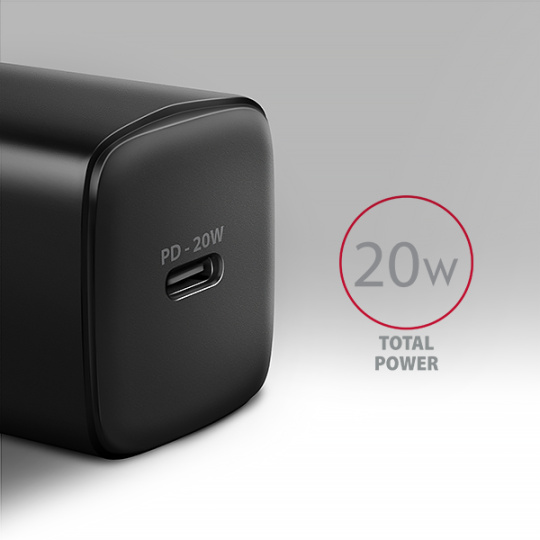AXAGON ACU-PD20, nabíječka do sítě 20W, 1x port USB-C, PD3.0/PPS/QC4+/AFC/Apple, černá